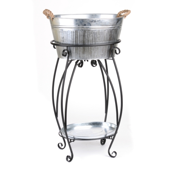 Galvanized Party Tub with Handles 4 46 53. Crafted from metal this drink tub also arrives with a stand to elevate it off the ground. Gray Iron Multi-Functional Galvanized Metal Tub on Stand.
