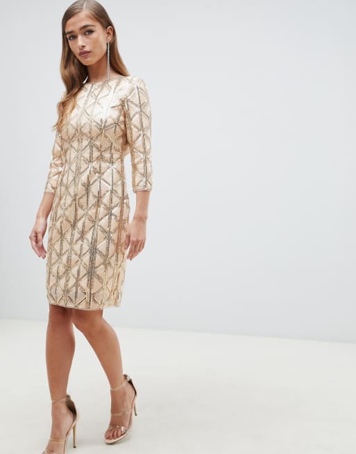Free return for first order. Sheer mesh embellished with an eye-catching display of shiny golden sequins covers this gorgeous gown with a sweetheart neckline and fitted bodice with seamed padded cups. Shop the latest Geometric Sequin Bodycon Dress products from Vanessa Jane and more on Wanelo the worlds biggest shopping mall.